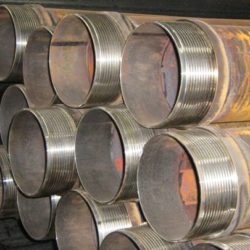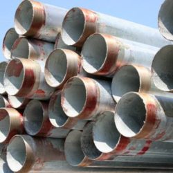 أنابيب مطلية بالزنك ذات نهايات بمشترك مقلوظ مصنوعة من الصلب الكربوني، تتصل بعضها بالبعض عن طريق لحام طولي.